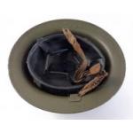 An RO & CO turtle helmet stamped 1939 with lining and chin strap.