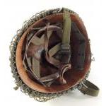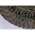 A US army helmet stamped 01/89 with liner, netting and strap.
