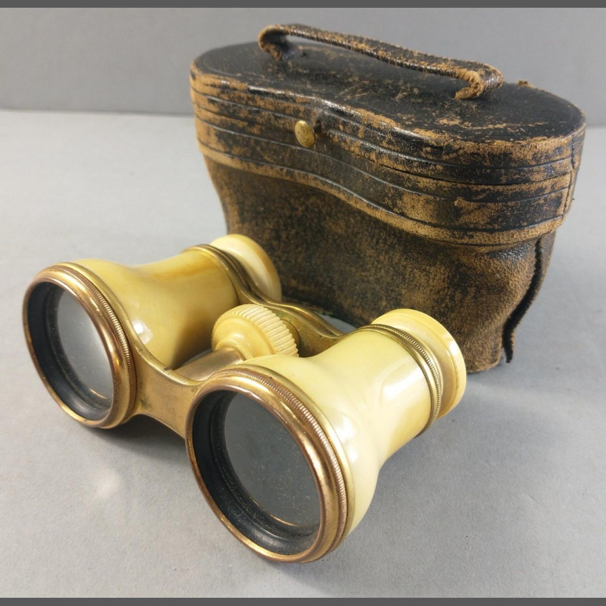 A pair of NEGRETTI & ZAMBRA opera glasses in worn leather case. Slight cracks to ivorine.