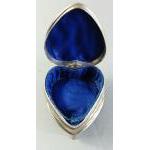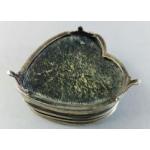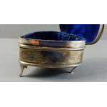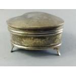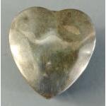 A small silver hallmarked lined heart shaped trinket box. Indistinct hallmark, 6cm length. Gross weight 87g approx