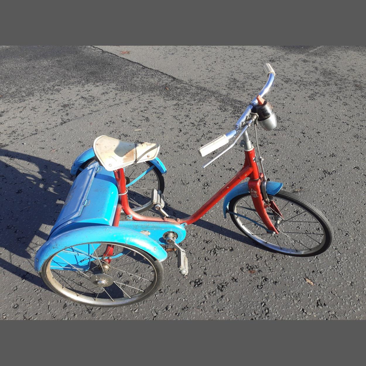 A super vintage TRI-ANG child's tricycle with original paint, pedals and with opening boot. A rare old piece in nice original condition.