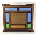 Wonderful antique hall wall mirror with coloured glass panels, shelf and two hooks. A lovely piece 570cm wide approx and in lovely condition. An unusual and interesting piece.