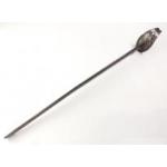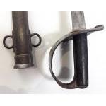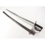 An 1890 pattern German States Cavalry sword by WEYERSBERG KIRSCHBAUM & CO. Solingen with original scabbard. 34 1/4" fullered blade. This sword was given to the vendor by her Grandfather when she was a child and was used by her for her highland dancing displays and as such has travelled extensively even displaying on cruise ships and at Cowal Highland Games! Marked to blade with usual markings but unusually also carries a WD Arrow. The reasons for the WD mark are unknown as these swords were usually souvenirs of later conflicts and not pressed into British service. NB. A helpful customer has pointed out these blades were made for the British Army. The vendor pointed out a slight almost imperceptible bend in the blade end, this was not the result of a late Victorian cavalry charge but rather perhaps a hefty footed Highland dancer. Blade free from rust, usually pitting etc on scabbard.