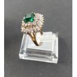 A CAMROSE & KROSS reproduction silver 925 stamped ring as worn by Jacqueline Bouvier Kennedy set with central faux emerald stone and clear stones measuring 20x20mm approx. Ring size T. With certificate.