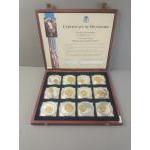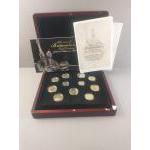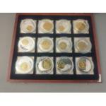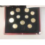 Two cases of plated coins in cases to include pre-decimalisation coins and coins of Britannia.