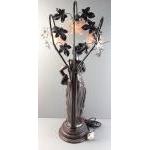 A large and impressive spelter classical lady table lamp with floral glass shades. One detached leaf noted but present. 84cm tall approx.