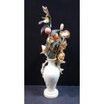 A very attractive ornamental vase in pale green with flower details on the front of the vase and a delicate fairy on the side. The vase is filled with attractive foliage and flowers. Vase stands 38cm tall approx.