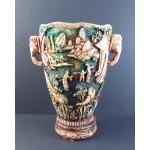 Vintage large carved resin Oriental style elephant handle vase in good collectible condition. 30cm high approx.