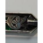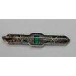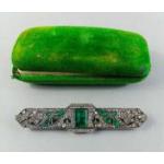 A gorgeous Art Deco bar brooch set with both clear and green stones. Measures 7.5cm approx weight 14g approx. has unusual pull-out catch.