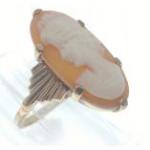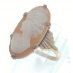 A lovely 9ct gold cameo ring with carved cameo on flared shoulders. Size O, gross weight 3.0g approx.