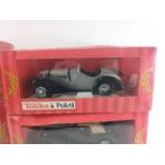DIECAST MODELS Four boxed POISTIL / Tonka models and a Burago corvette. Boxes with damage from storage.