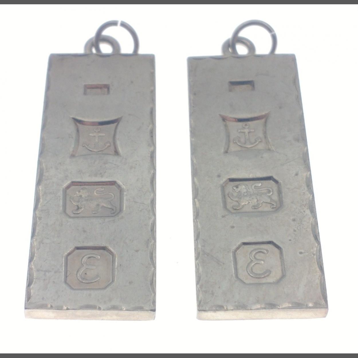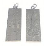 Two silver hallmarked floral & fauna engraving on each silver ingot pendants - weight 30.55g approx
