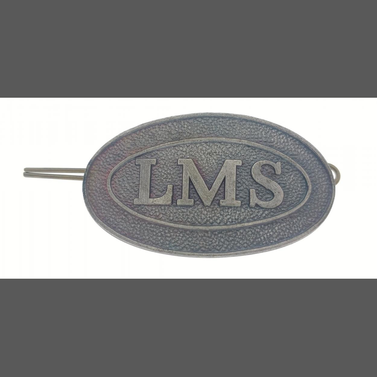 A vintage white metal LMS cap badge dimension 6cm x 3cm approx -