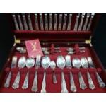 A lovely HOUSE OF FRASER SHEFFIELD made red leather topped canteen of fine cutlery on legs, 8 place setting