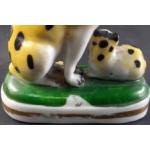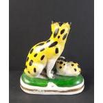 A scarce c19th century antique CHELSEA miniature porcelain spotted mother cat with kitten. Anchor stamp to rear in gilt. In lovely condition with minor rubbing to gilt. 7cm long approx.
