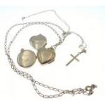 Three hallmarked gold lockets, one with chain (stamped 375) 46cm approx. Each locket approx 15mm length, gross weight 8.98g approx. Plus a 9ct stamped crucifix 20mm long on a 9ct chain 40cm approx, weight 0.62g approx