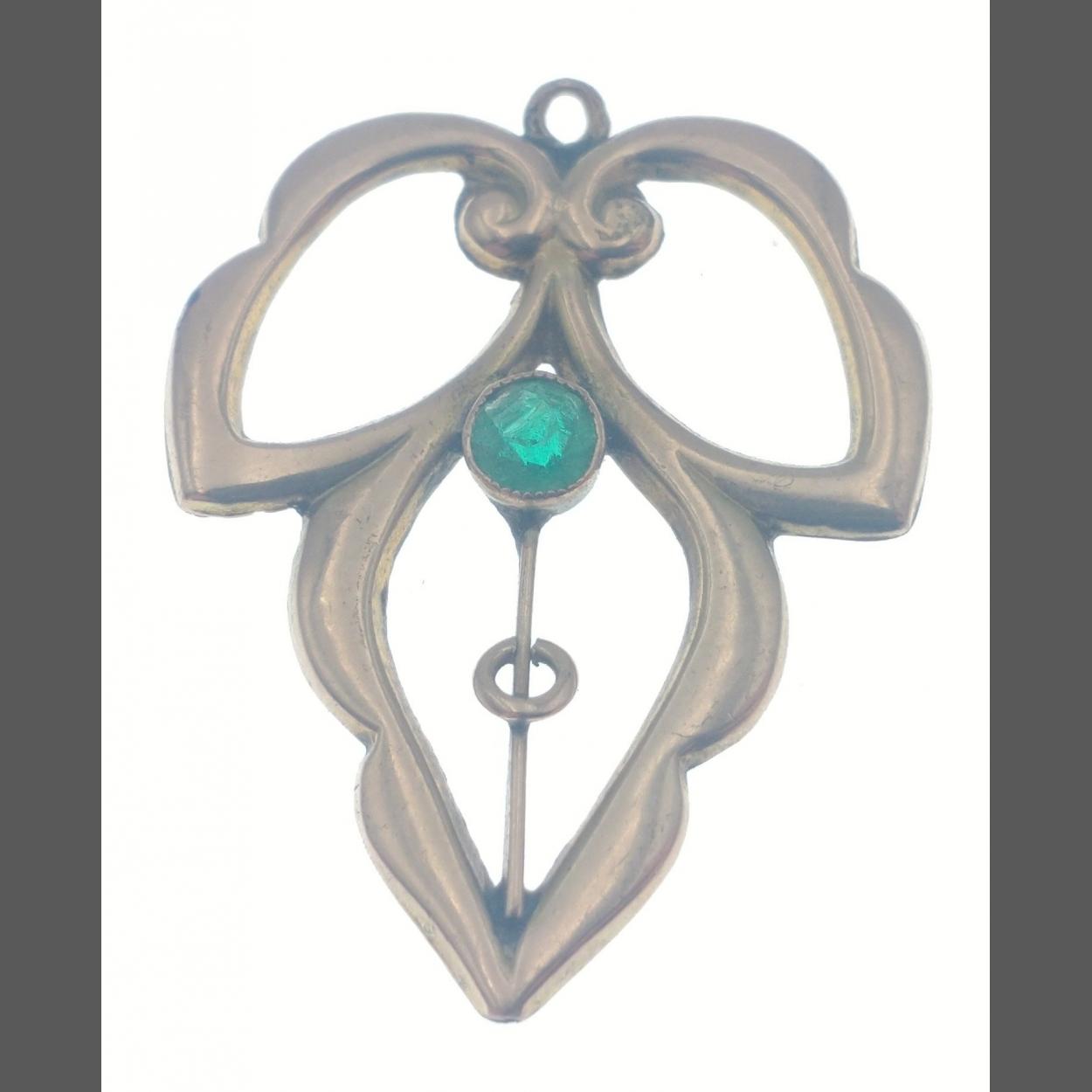 A pretty pendant stamped 9ct set with a small green stone, 30mm long approx, gross weight 1.0g approx