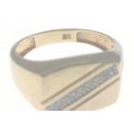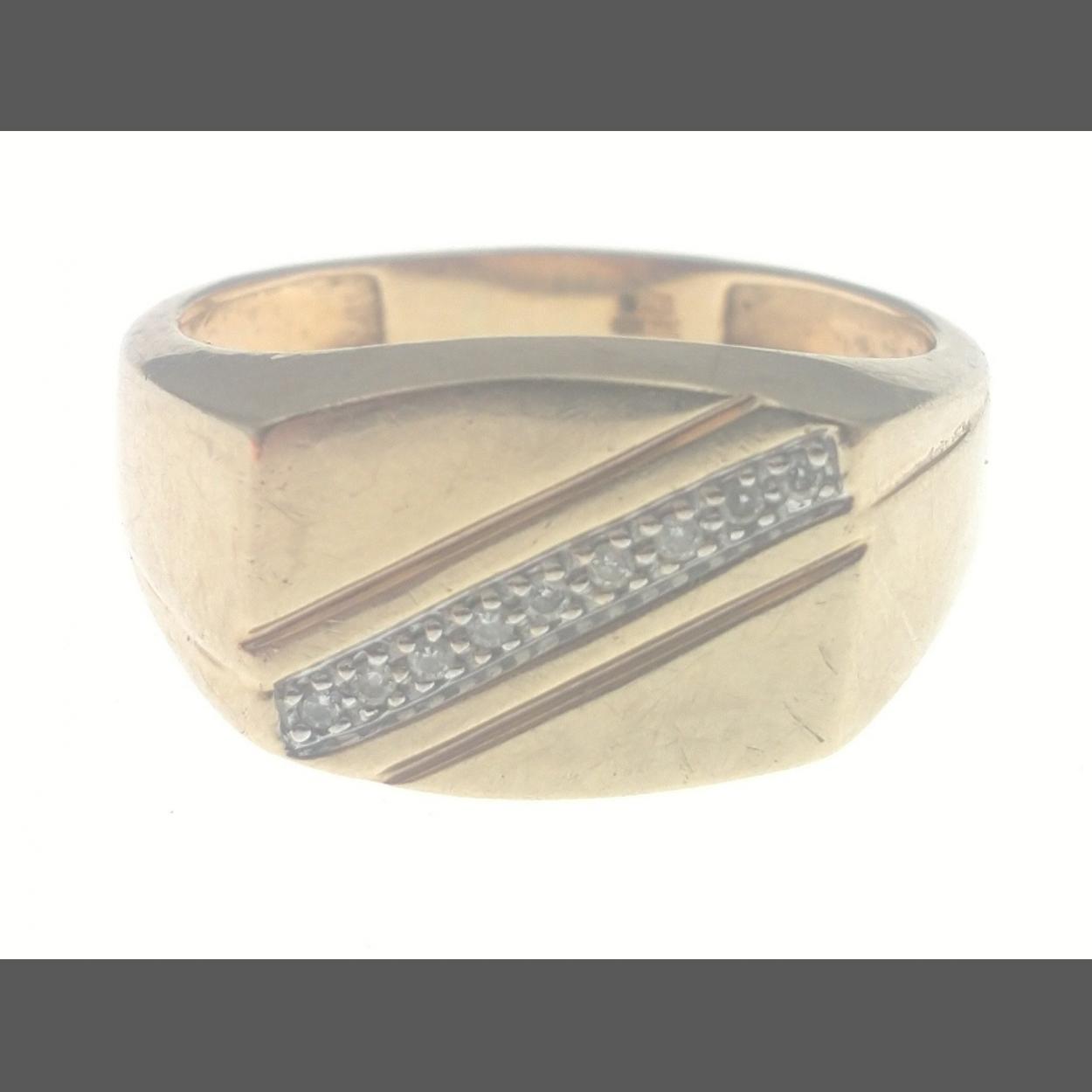 A gent's ring set with 8 diamond (tested) chips. Stamped 9K, size R, weight 3.12g approx