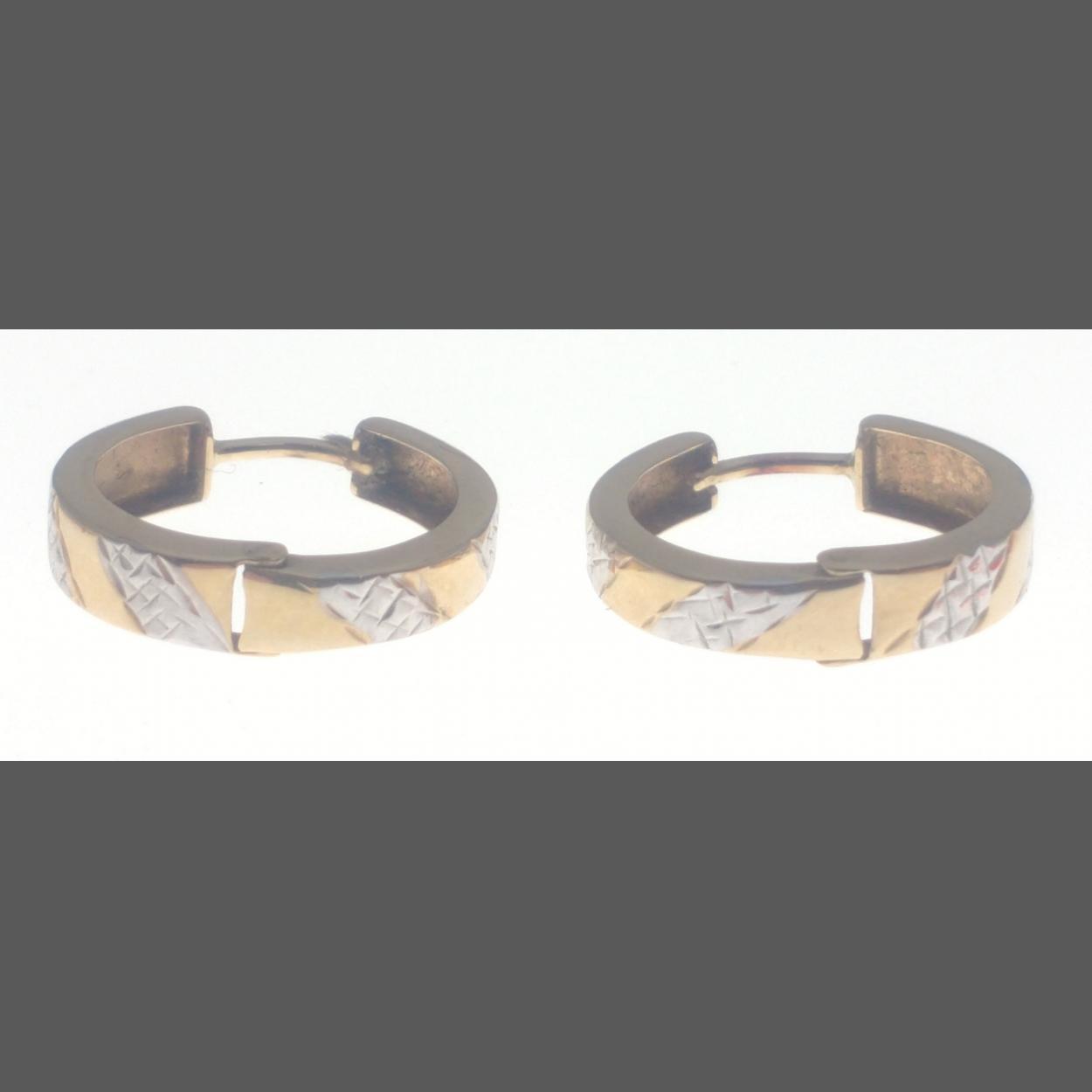 A pair of small gold hoop earrings stamped 375. Weigh 1.35g approx