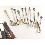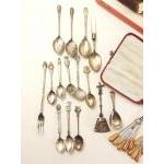 A collection of EP teaspoons, a bone handled carving set still in its presentation case, a set of fish EP knives and forks and some loose cutlery flatware, and a small collection of 10 teaspoons including one silver etc