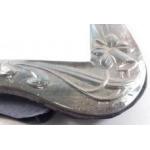 A silver hallmarked Arts & Crafts style mirror, London 1983, with a daffodil design in all four corners, frame measures 30 x 24cm approx