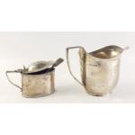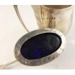 A mixed silver lot to include a hallmarked milk jug, London 1884, a condiment dish and spoon, indistinct marks. Gross weight exc. Bristol liner 217g approx