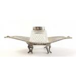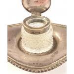 A silver hallmarked cut glass inkwell and base (21cm approx), marked collar and base for Birmingham 1908, stamped maker TW. Base weighs 130g approx
