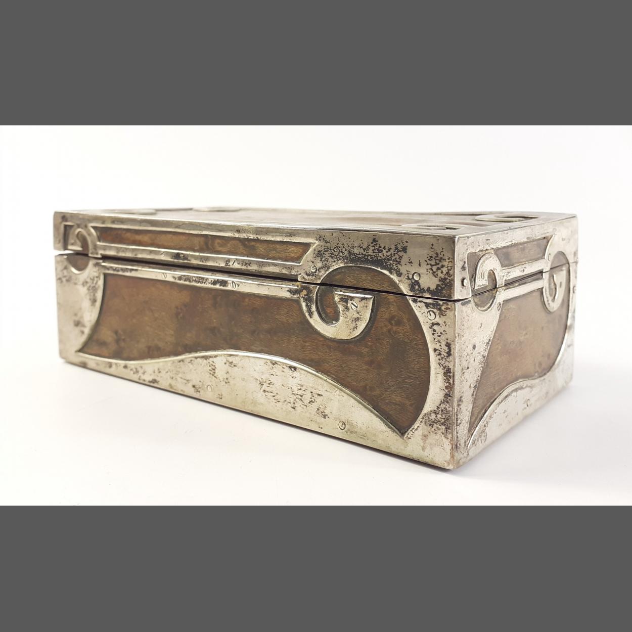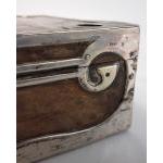 A lovely bound wooden box with G.A.S. stamps to the white metal scroll work. A very pretty antique piece. Measures 15 x 8x 5cm approx.