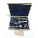 A lovely tortoise shell fitted box with most of contents of a ladies antique sewing case 17x11cm approx
