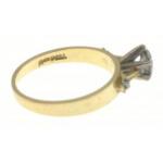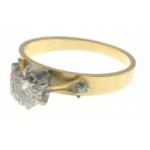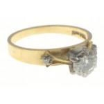 An 18ct indistinctly stamped gold diamond ring with central diamond 4mm approx and 2 smaller stones on shoulders, size P/Q, gross weight 3.85g approx