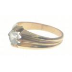 An unmarked yellow metal ring with a 4mm centre stone, tests as diamond, size P, gross weight 3.9g approx