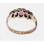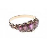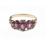 An antique unmarked yellow metal ring with 5 graduated amethysts. Small solder repair, size M, gross weight 1.65g approx