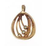 A 9ct drop pendant with swirl pattern and 3 green stones, 20mm approx, gross weight 2.2g approx
