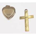 A rolled gold fashioned locket pendant (2.6g approx) and an RG stamped crucifix pendant (1.5g approx) ,