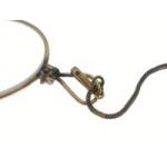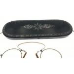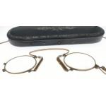 A pair of gilt pince-nez within a vintage ABALONE decorated case
