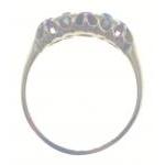 An 18ct ruby and diamond gold ring, with 3 rubies and 4 diamonds (tested), size N, gross weight 3.6g approx