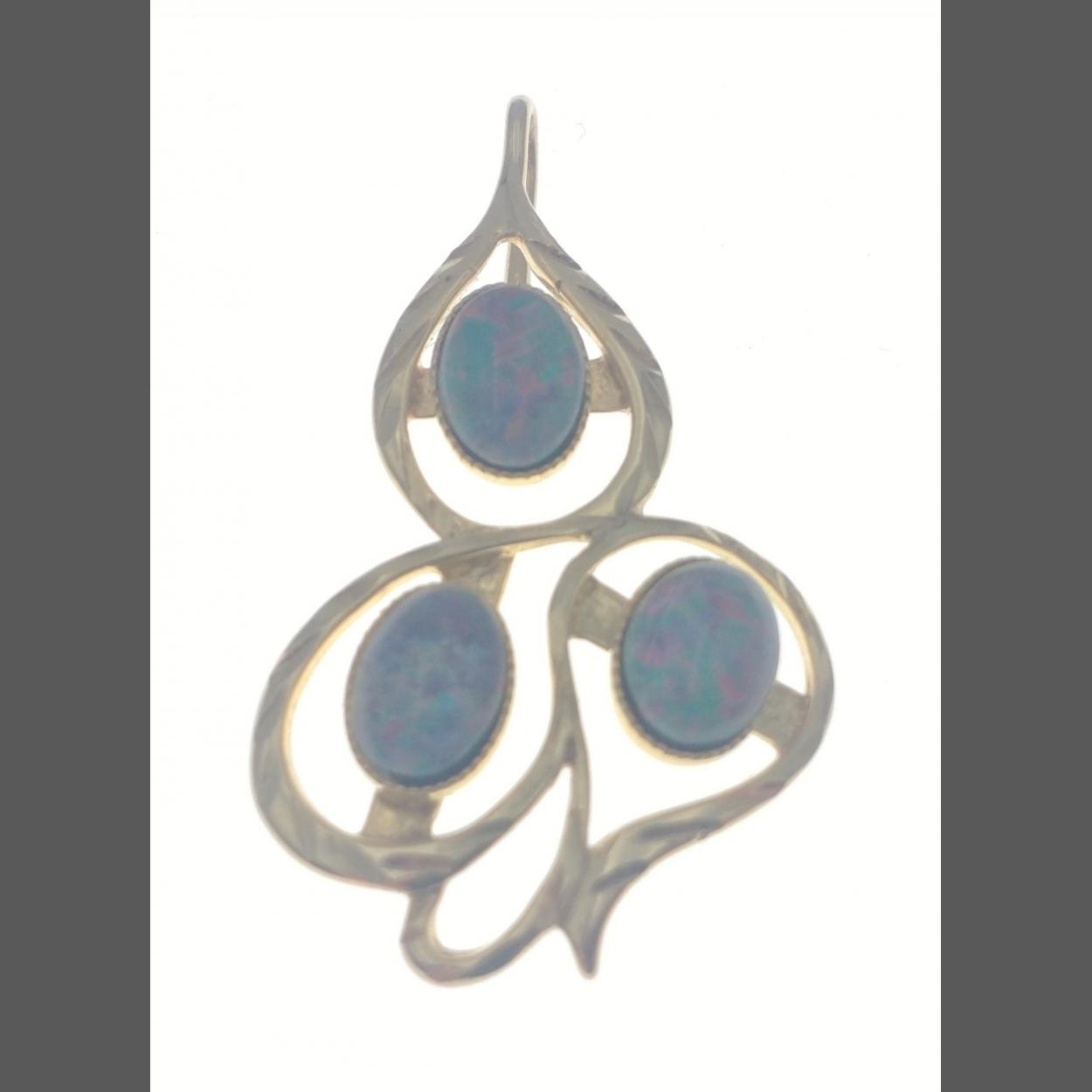 A pretty leaf-shaped pendant set with 3 opals, 30mm in length, stamped SIL,