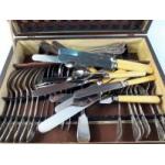 A useful wooden cutlery canteen with a good selection of plated flatware.