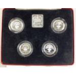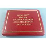 A Royal Mint 1984-1987 United Kingdom £1 Silver Proof Collection coins in capsules, complete in case with paperwork.