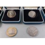 A 1995 UK Royal Mint Silverproof £1 and a 1995 UK Royal Mint Second World War £2 coin, both in capsules and also 2 other Royal Mint Cases with loose coins.