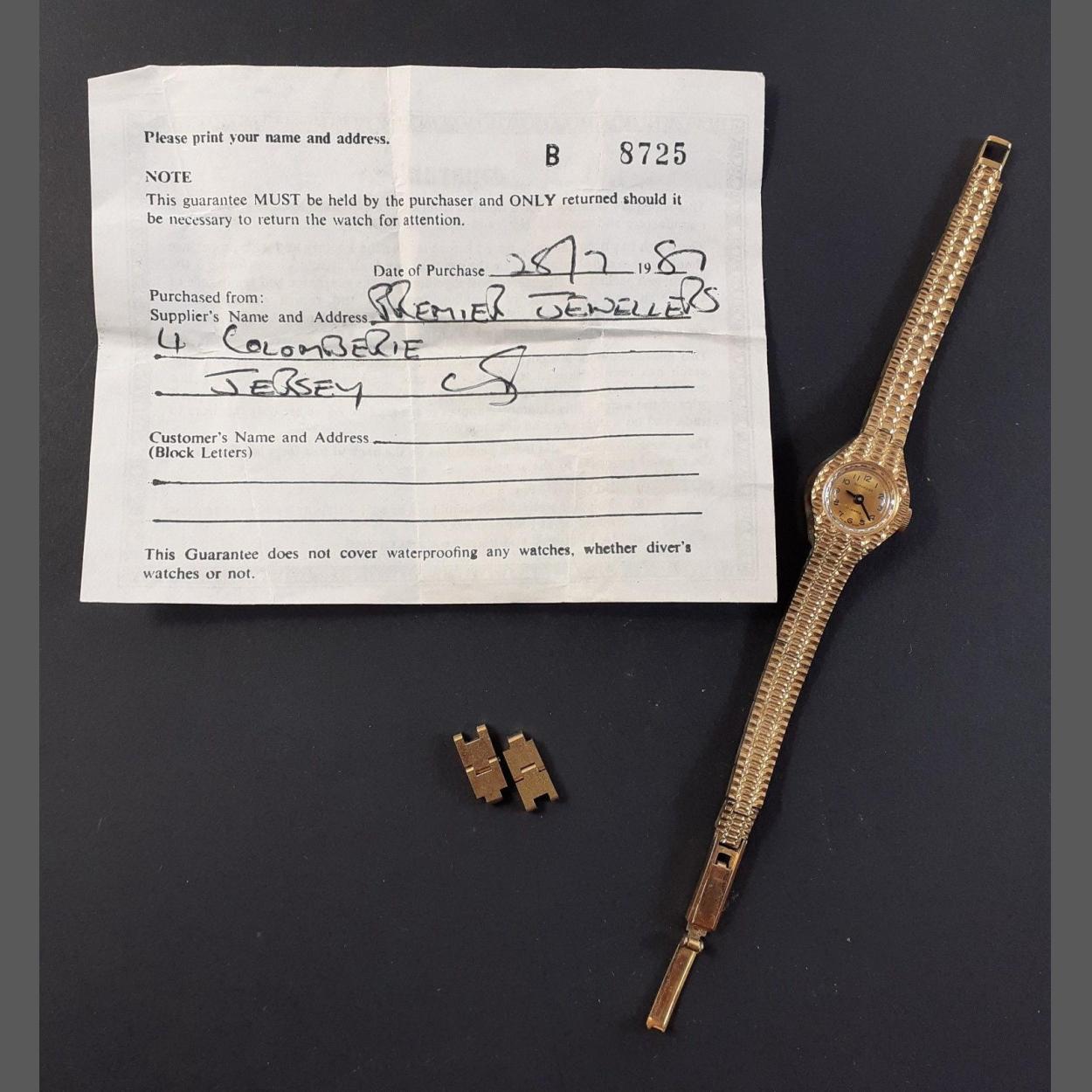 Pretty dainty gold plated watch with spare links bought from Premier Jewellers Jersey.
