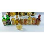 A collection of miniature whisky bottles to include OTHER FAMOUS BELLS, FOUR ROSES BOURBON, MORTON'S SPEY ROYAL, plus some novelty lamp bottles and others.