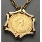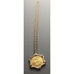 A 1974 Elizabeth II Full gold Sovereign in 9ct mount on a 9ct chain. 22g approx in total.