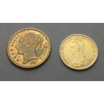 Two gilt Victorian coins of interest to include a gilded 1887 sixpence and an 1837 To Hanover token