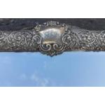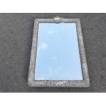 A large ANTIQUE VICTORIAN 27" x 20" silver repousse floral design hand-chased table / vanity mirror with floral decoration likely by Henry Matthews of Birmingham - framed table mirror with purple velvet backing with easel stand - a stunning example! Indistinct hallmarks for Birmingham 1905 HM maker.