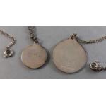 Two silver stamped St Christophers on chains (one 925) and one additional broken silver chain. 15g approx gross