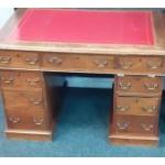 FABULOUS PATINA! An EDWARDIAN nine drawer knee hole desk with red leather writing top - dimensions width 104cm x depth 70cm x 70cm height approx (comes in 3 pieces for ease of transport etc)
