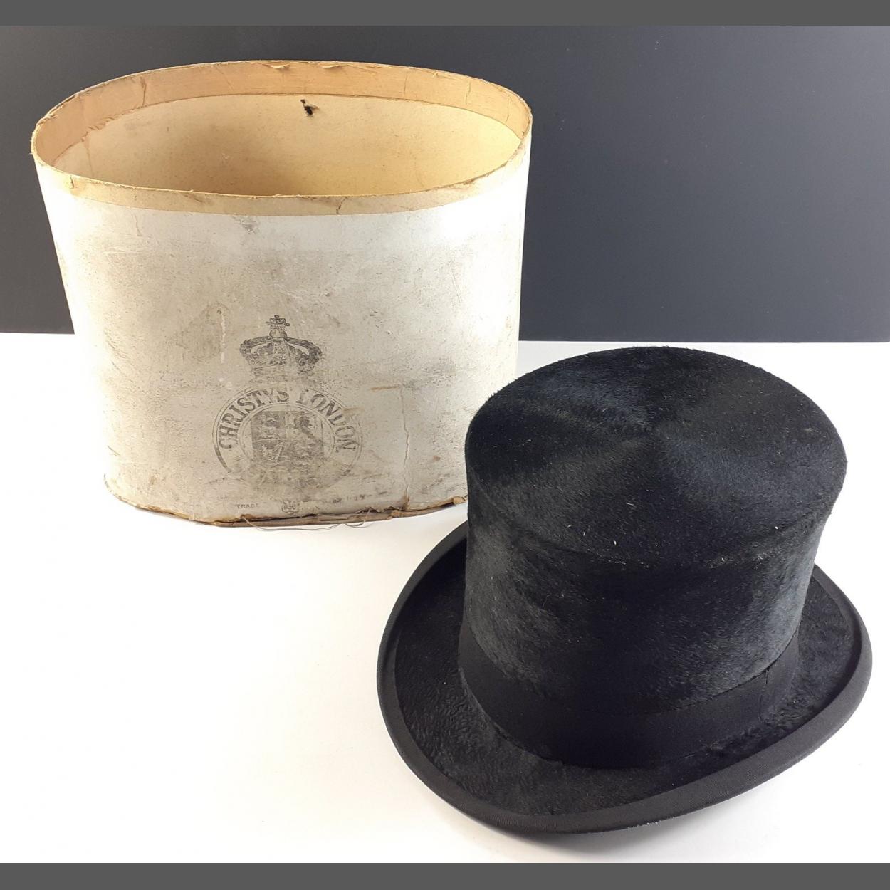 A VINTAGE CHRISTY'S of LONDON boxed top hat retailed by J.S. Walker of Preston & Fleetwood - internal band measures 54cm approx - this item comes with its original box but with no lid.