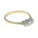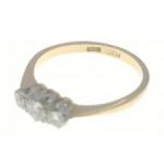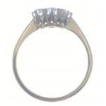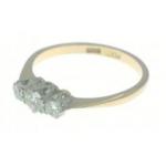 Striking three stone diamond ring with three full brilliant cut stones. The centre stone 3mm approx, the others 2mm approx. Size P, gross weight 2.7g approx. 1980 insurance valuation of £450. A very pretty piece with three nice clean stones.