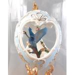 A very pretty ornamental cut out ceramic egg from FRANKLIN MINT with blue bird inside presented in a wood based glass dome. Stands 30cm tall and 20cm across at the base approx. A nice attractive piece.